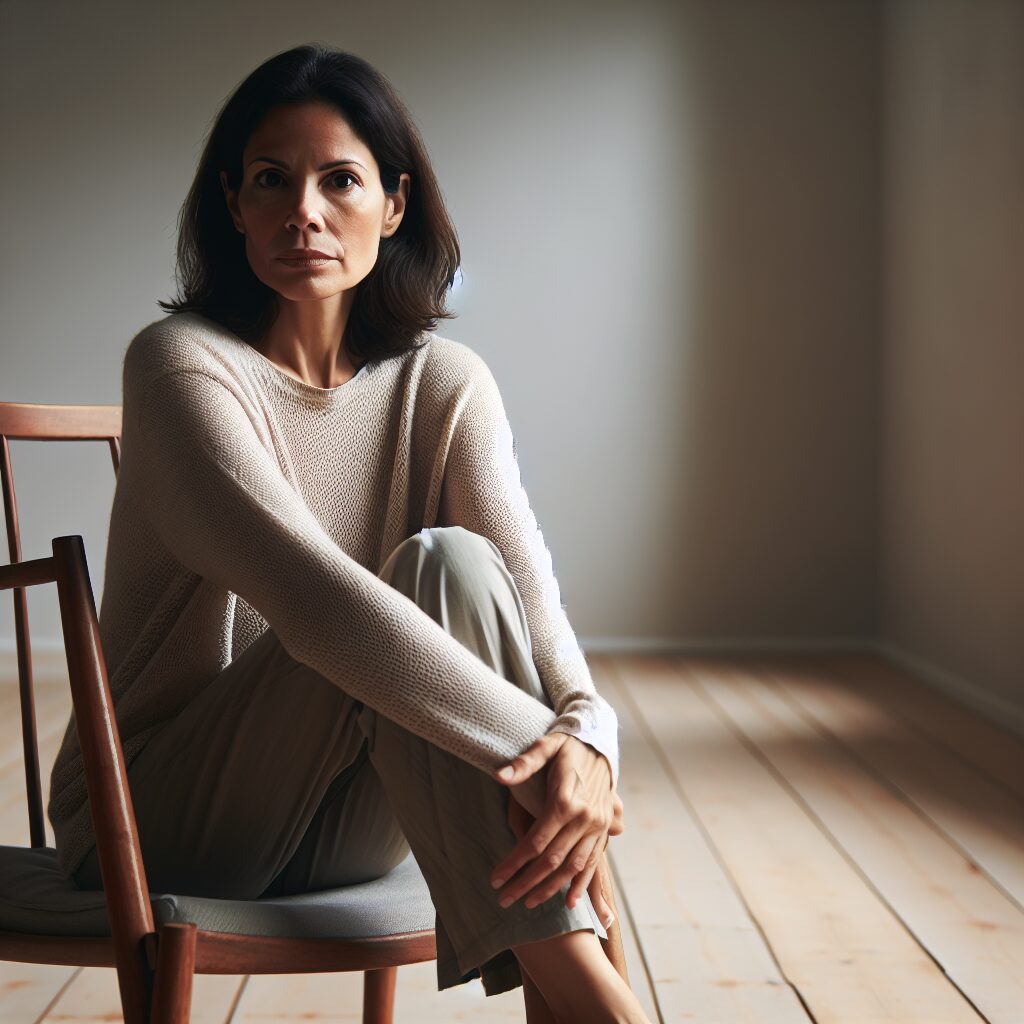 تصویری از یک فرد که بر روی صندلی نشسته است و به افکار تنهایی خود فکر می‌کند.