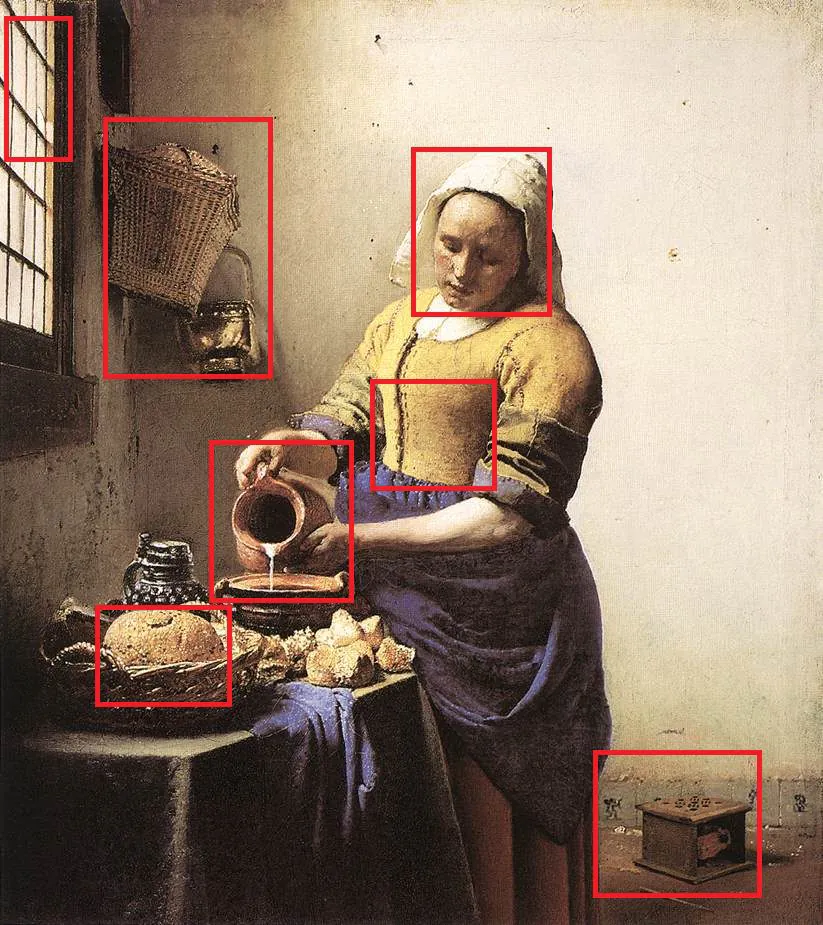 ورمیر در آثارش به طور مداوم از نمادها و عناصر بصری استفاده میکند که میتواند به بررسی عمیقتر احساسات و تجربیات درونی او منجر شود. در “خدمتکار شیر”، استفاده از نمادهایی مانند کوزه و نان، به همراه حالت چهره خدمتکار، میتواند نشاندهنده تمایلات پنهان و احساسات سرکوبشده باشد.